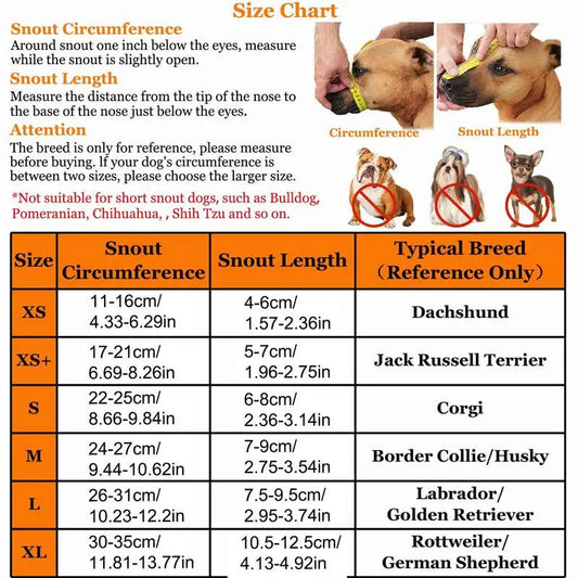 Adjustable Dog Muzzle Soft material Breathable Strong Basket Small Medium Large X-Large Dogs Mouth Muzzles Lightweight & Durable