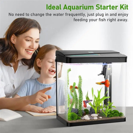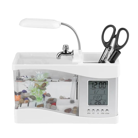 LED Mini USB Desktop Aquarium with LCD Clock Display, Pebbles & Fish Tank Decoration - Ideal for Betta Fish