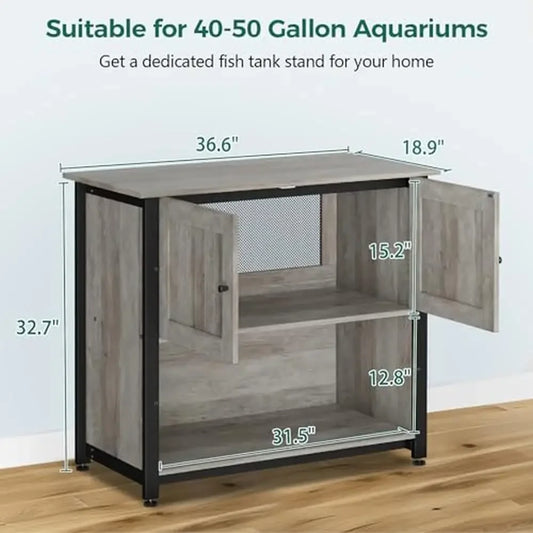 Metal Aquarium Stand with Cabinet 40-50 Gallon Fish Tank Accessories Storage Reptile Turtle Terrarium Table Bearable Mesh Design