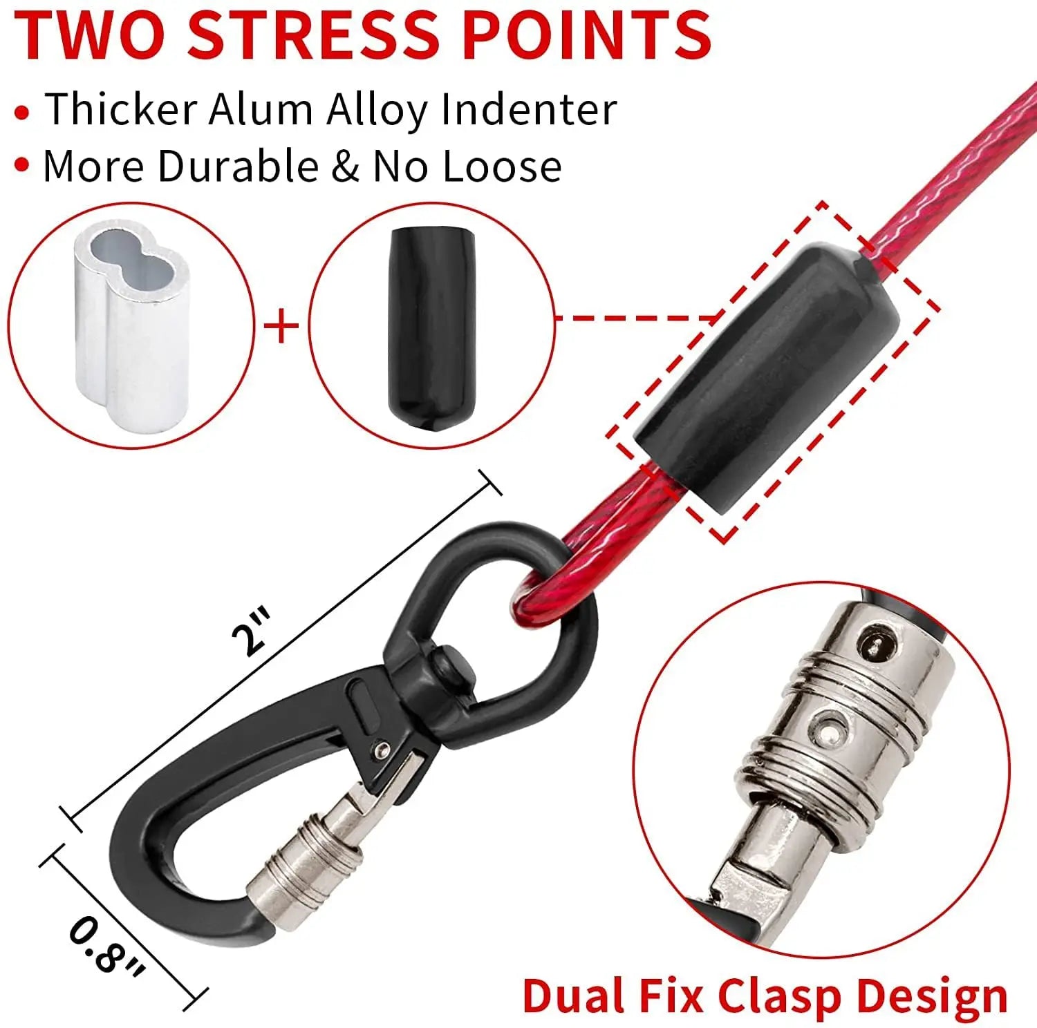 Strong Tie Out Cable: The tie out cable for dog is made of 5mm strong steel wire rope and PVC coating , which is chew and rust proof,the alloy clips with safety lock has rigorously quality tested.At 10/20/30/50 feet long, rigorously tested for dogs up to 250 lbs,has high tensile strength and impact toughnes.